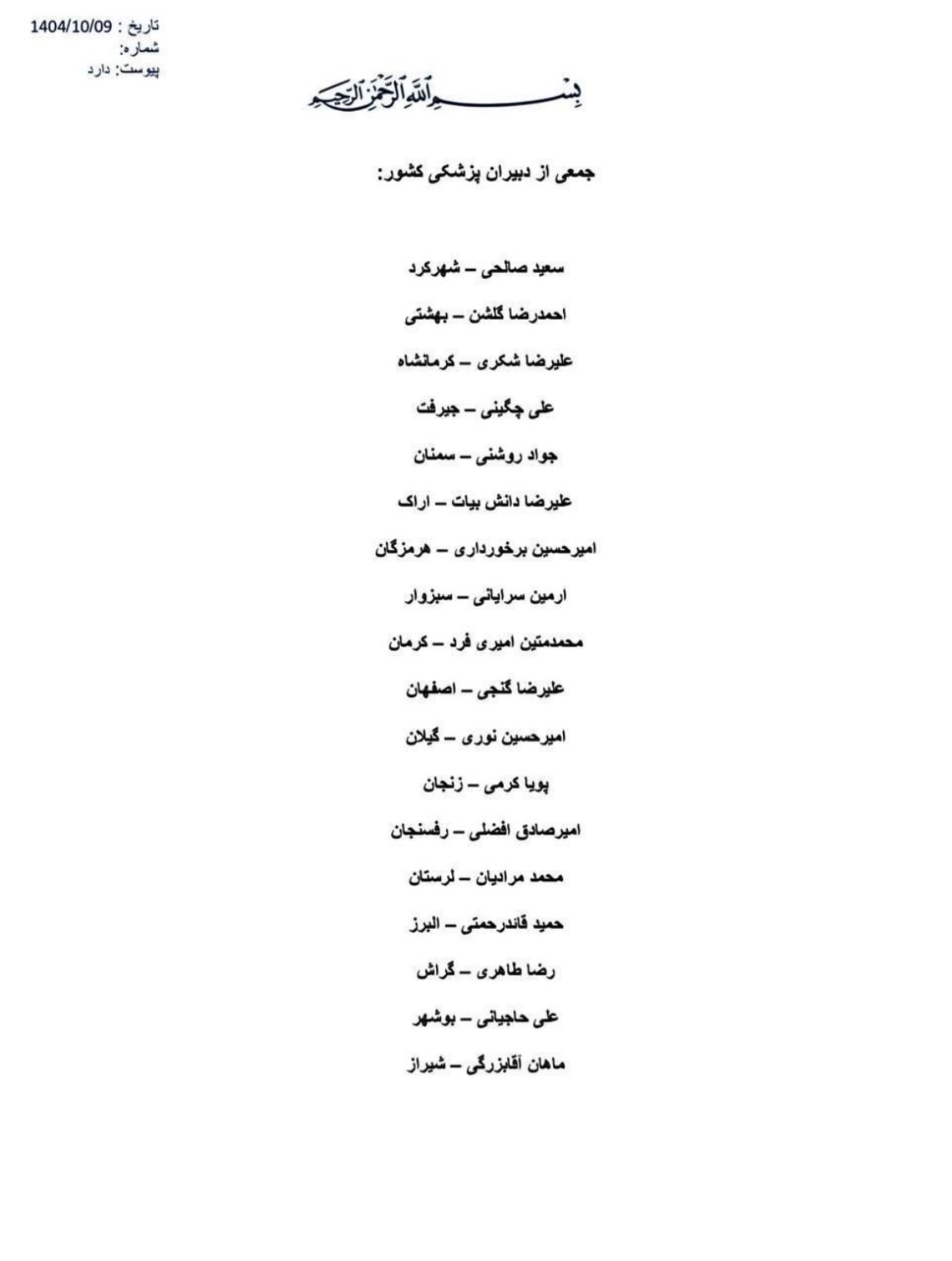 حمایت از نامه وزیربهداشت و مجمع عمومی فرهنگستان علوم پزشکی